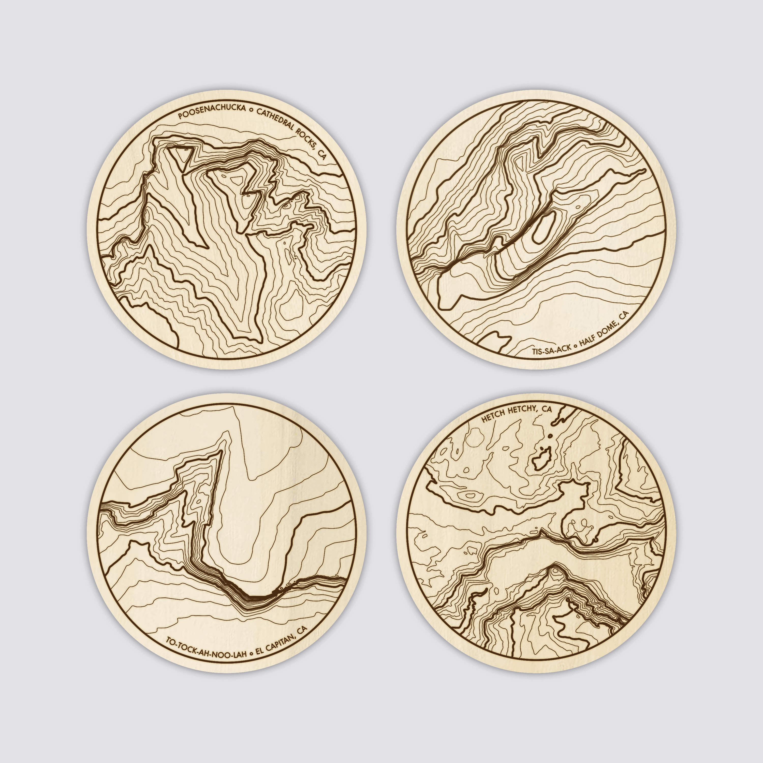 Immerse yourself in the breathtaking beauty of California's most iconic park with our Yosemite Topography Coaster Set. Featuring the iconic landmarks Half Dome (Tis-sa-ack), El Capitan (Too-tok-ah-noo-lah), Hetch Hetchy, and Cathedral Rocks (Poo-see-na-chuck-ka), this wood coaster set captures the essence of Yosemite.