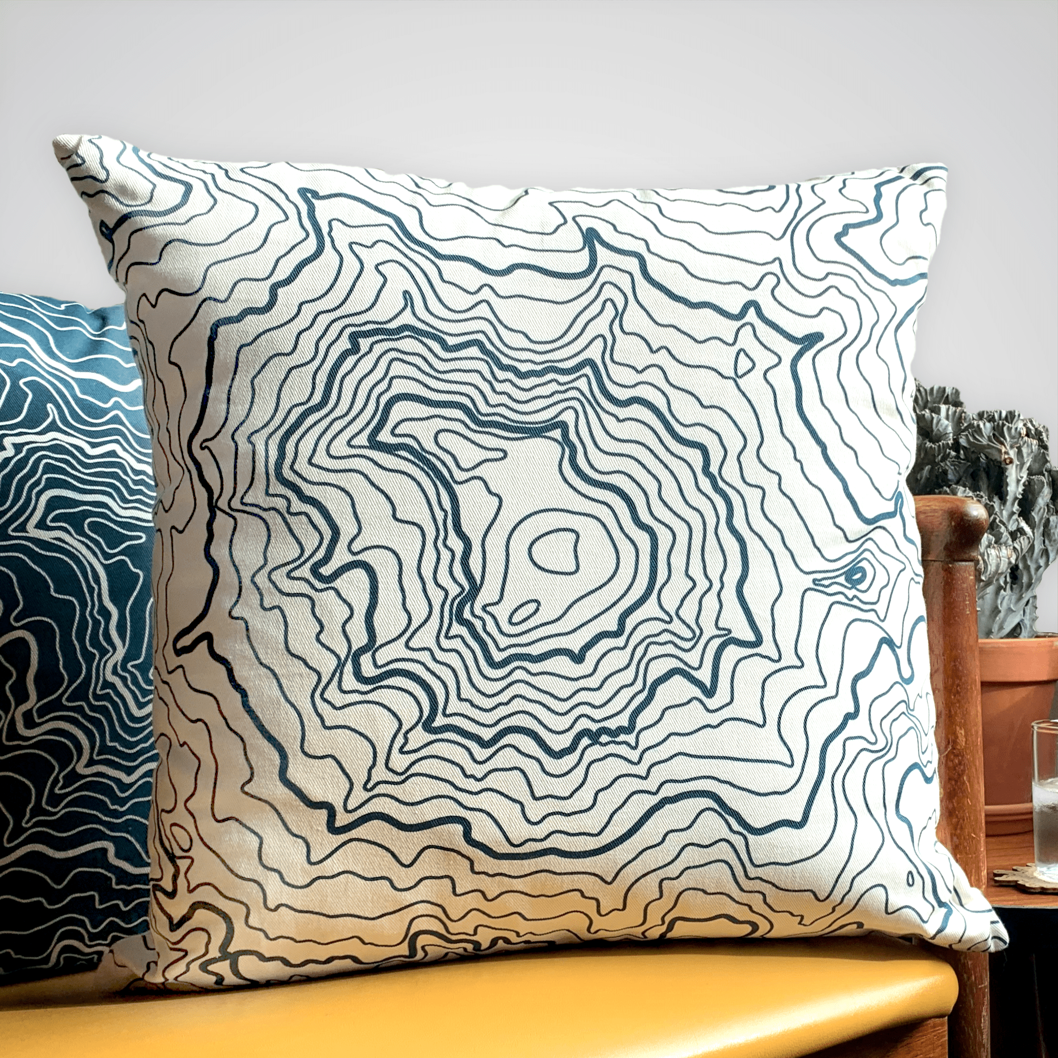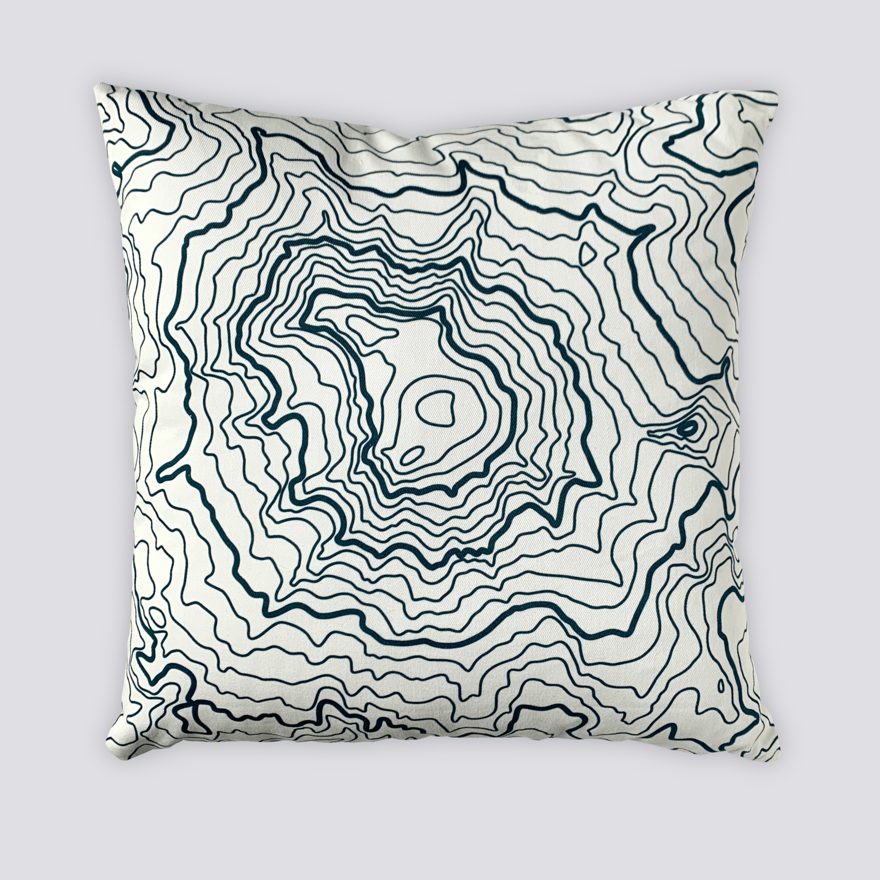 Mt Rainier Topography Linen Pillow - Cream & Evergreen