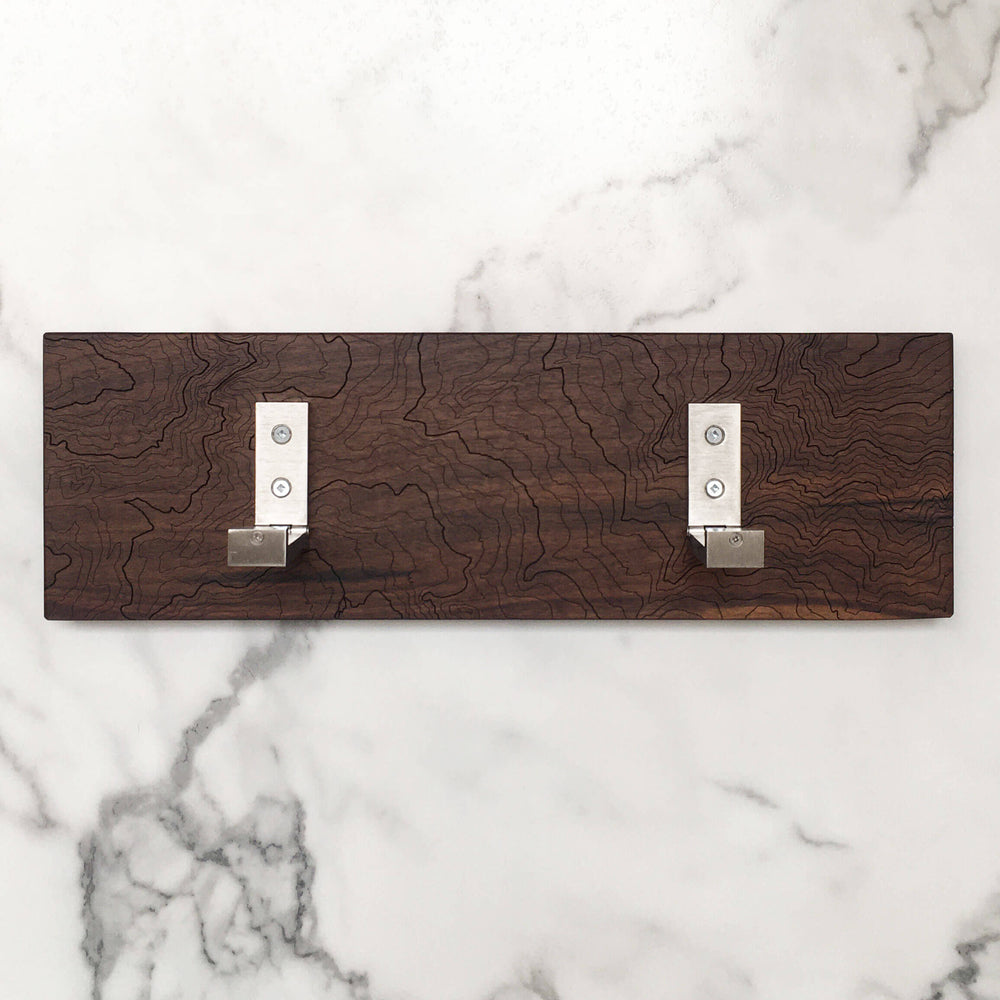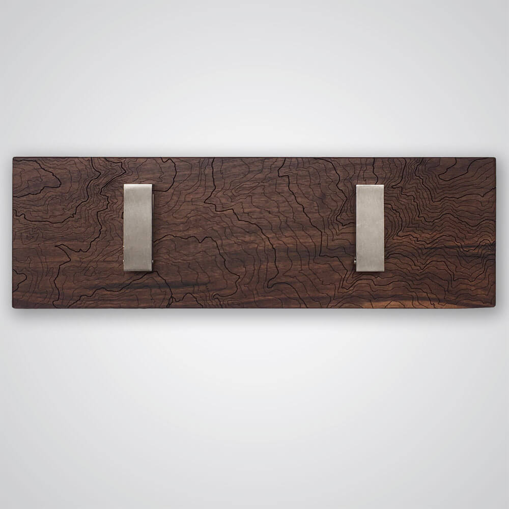 Mt Rainier Topography Coat Hanger in Walnut Wood - 2 Hooks