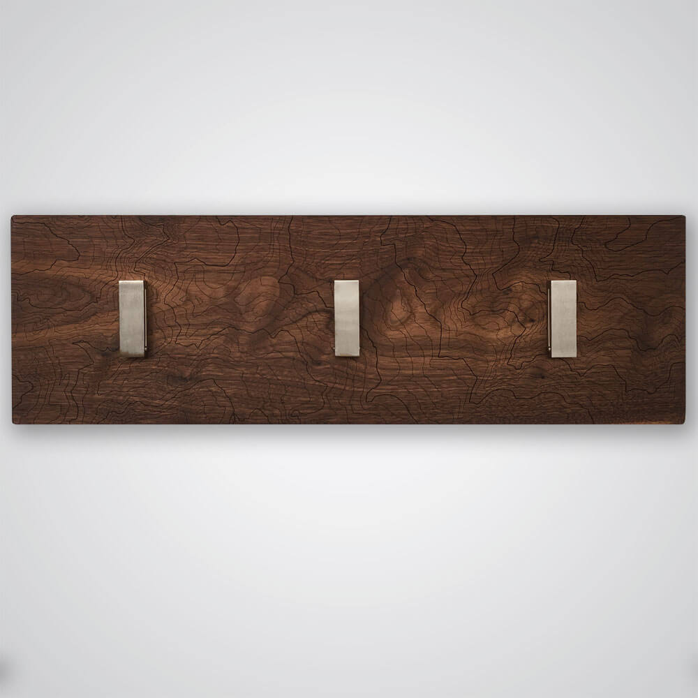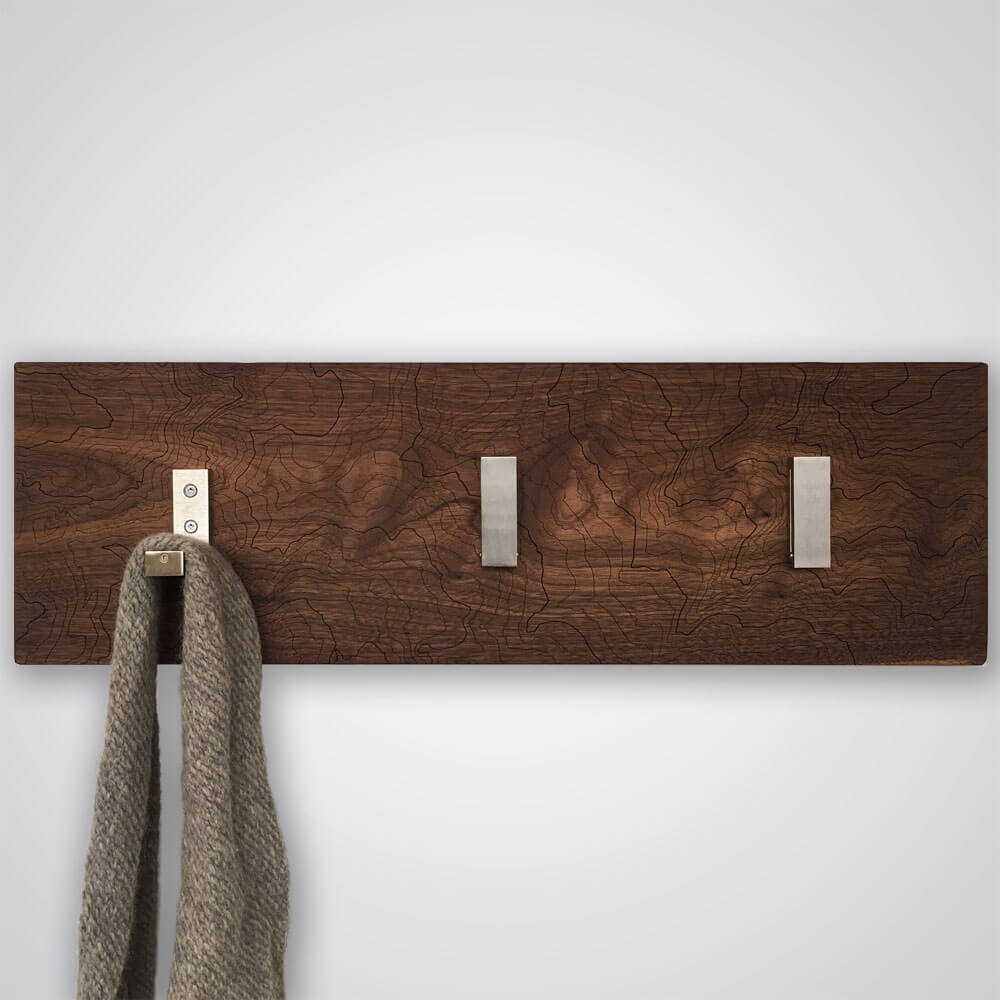 Mt Rainier Topography Coat Hanger in Walnut Wood - 3 Hooks