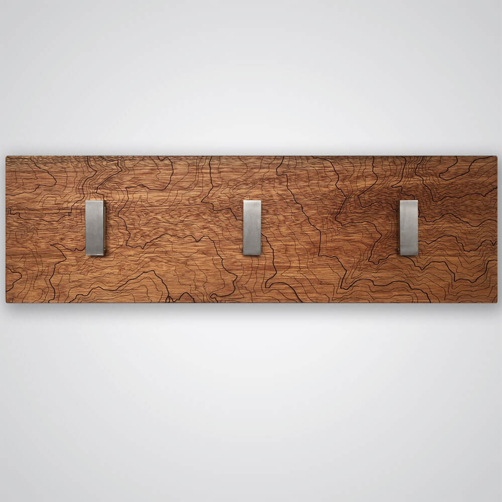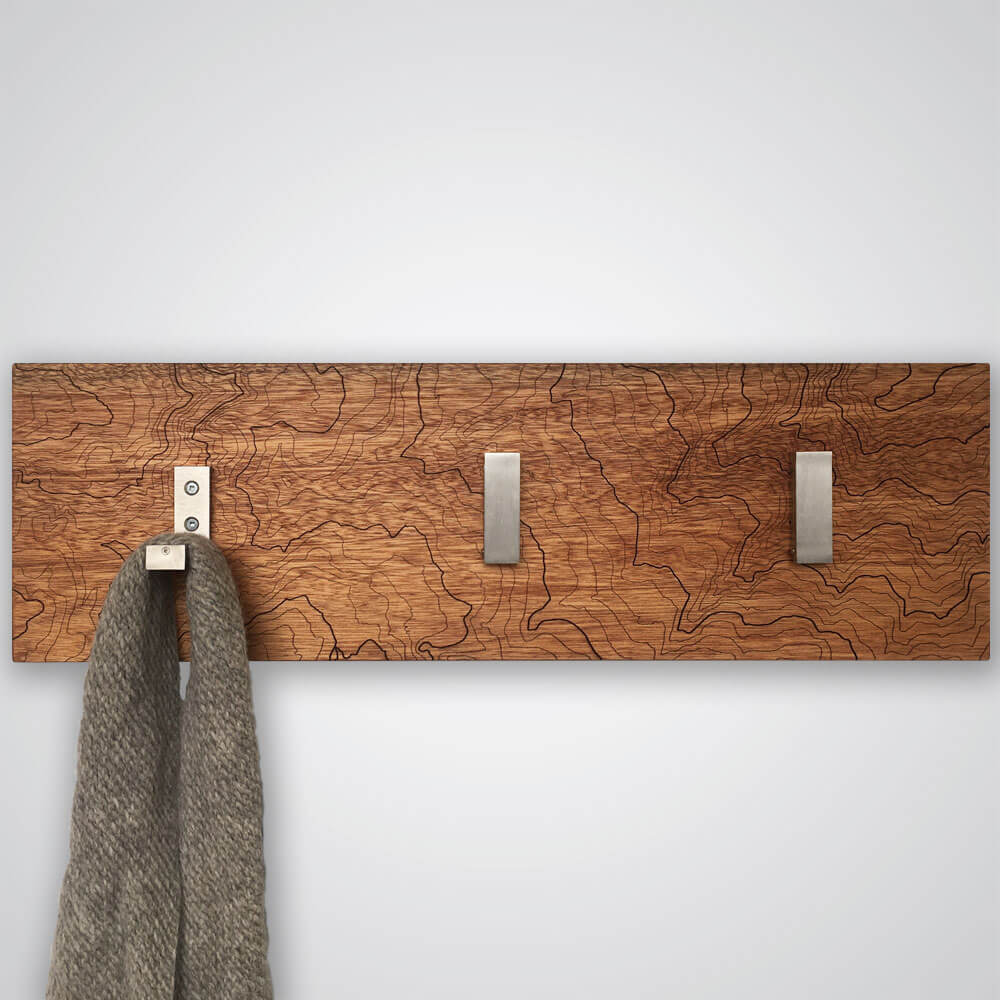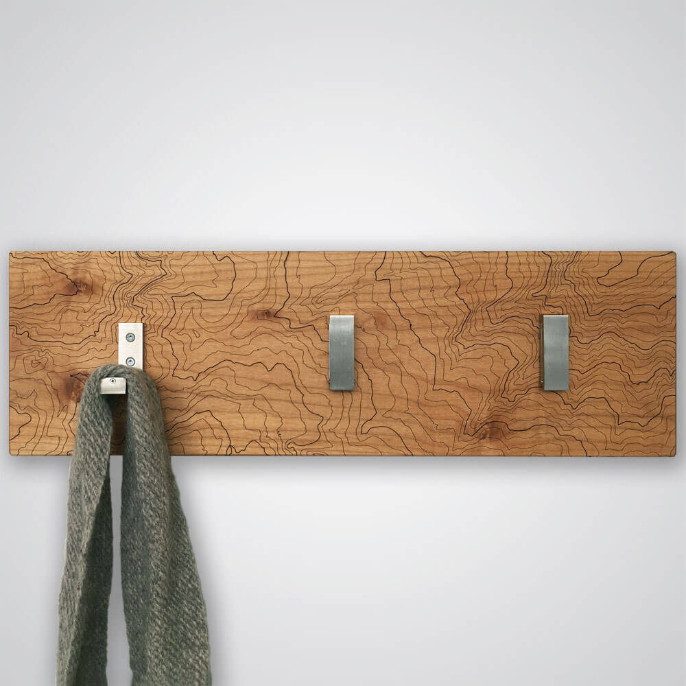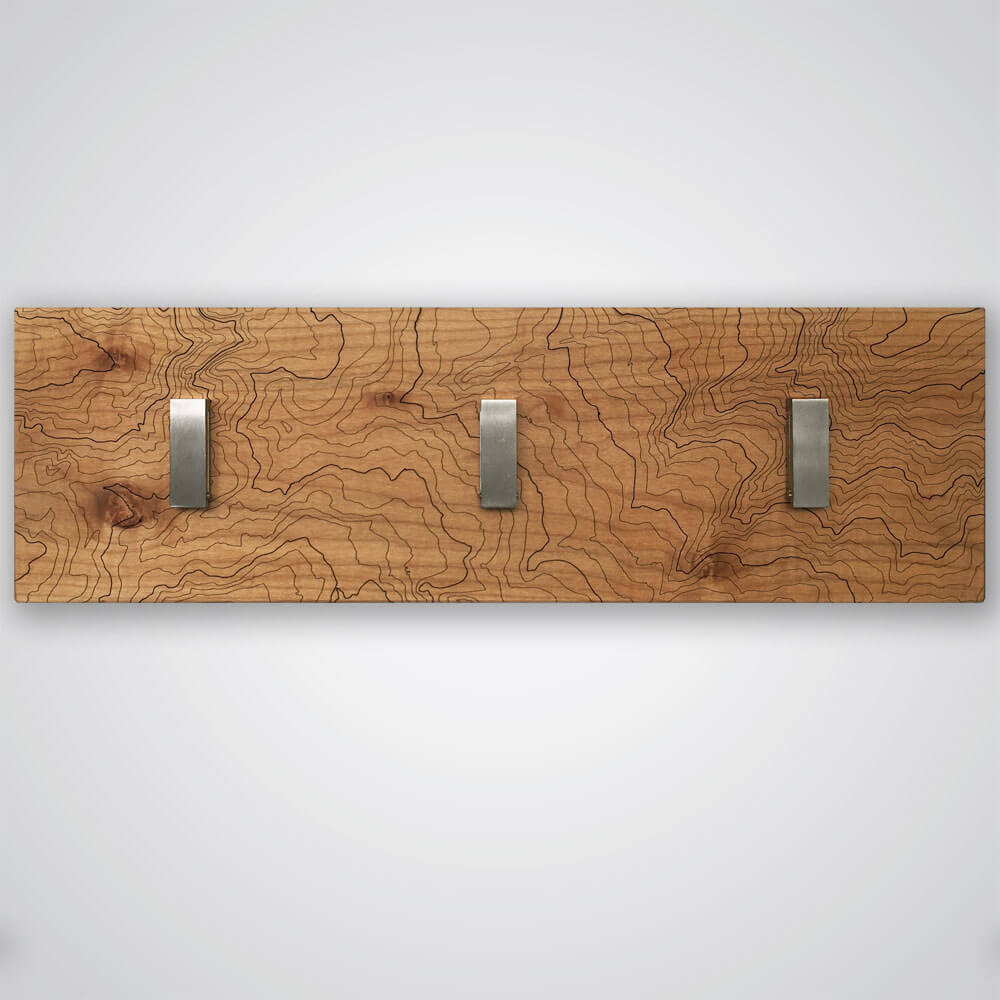 Mt Rainier Topography Coat Hanger in Cherry Wood - 2 Hooks