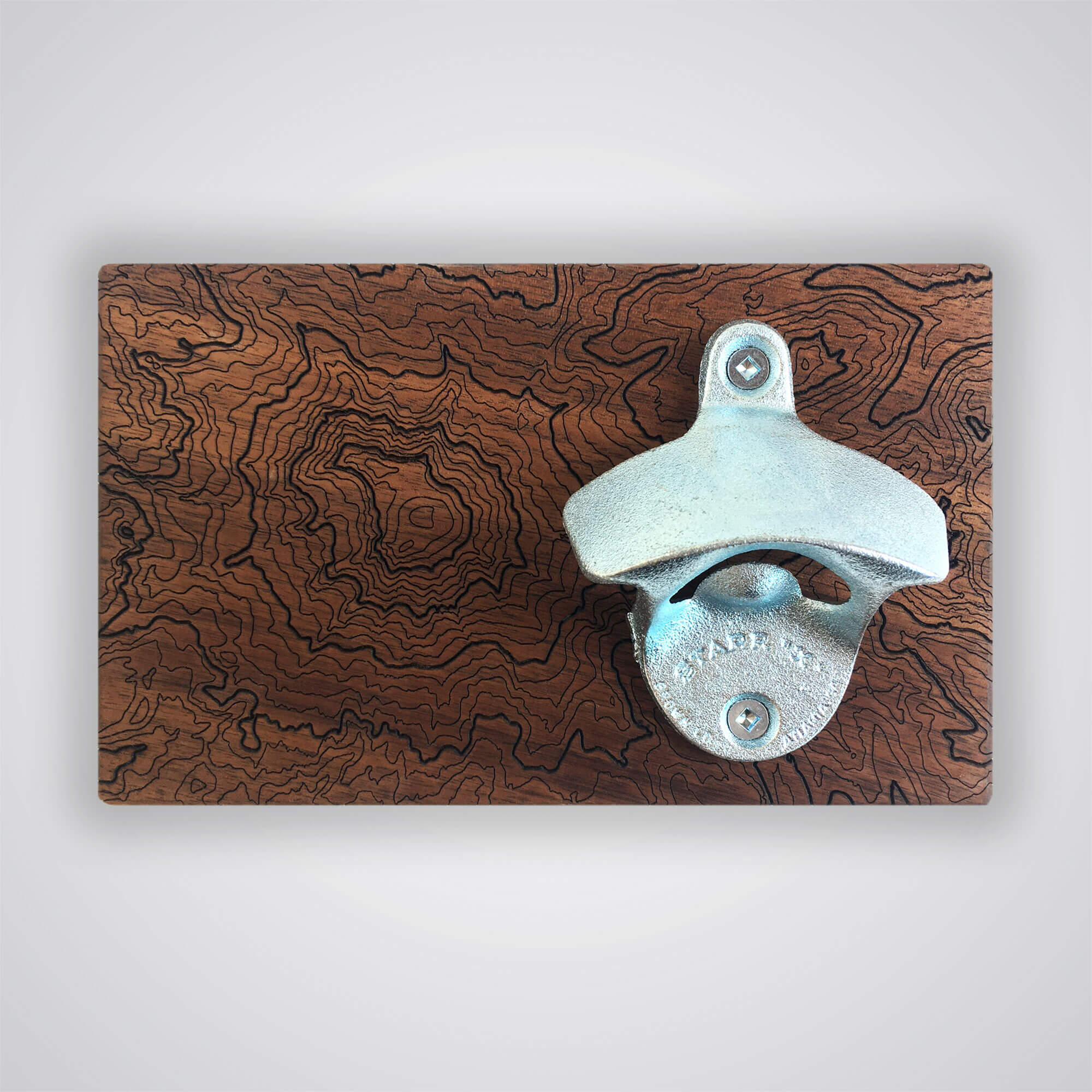 Mt Rainier Topography Bottle Opener - Walnut Wood