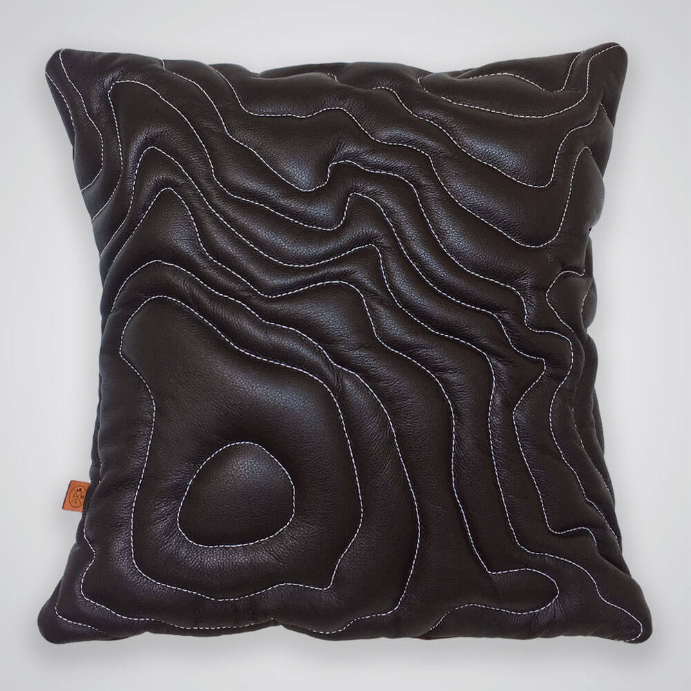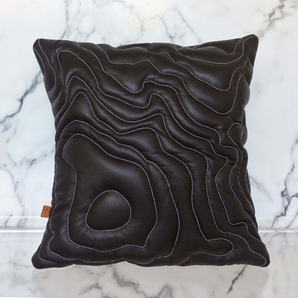 Mt Rainier Topography Pillow - Dark Brown Leather