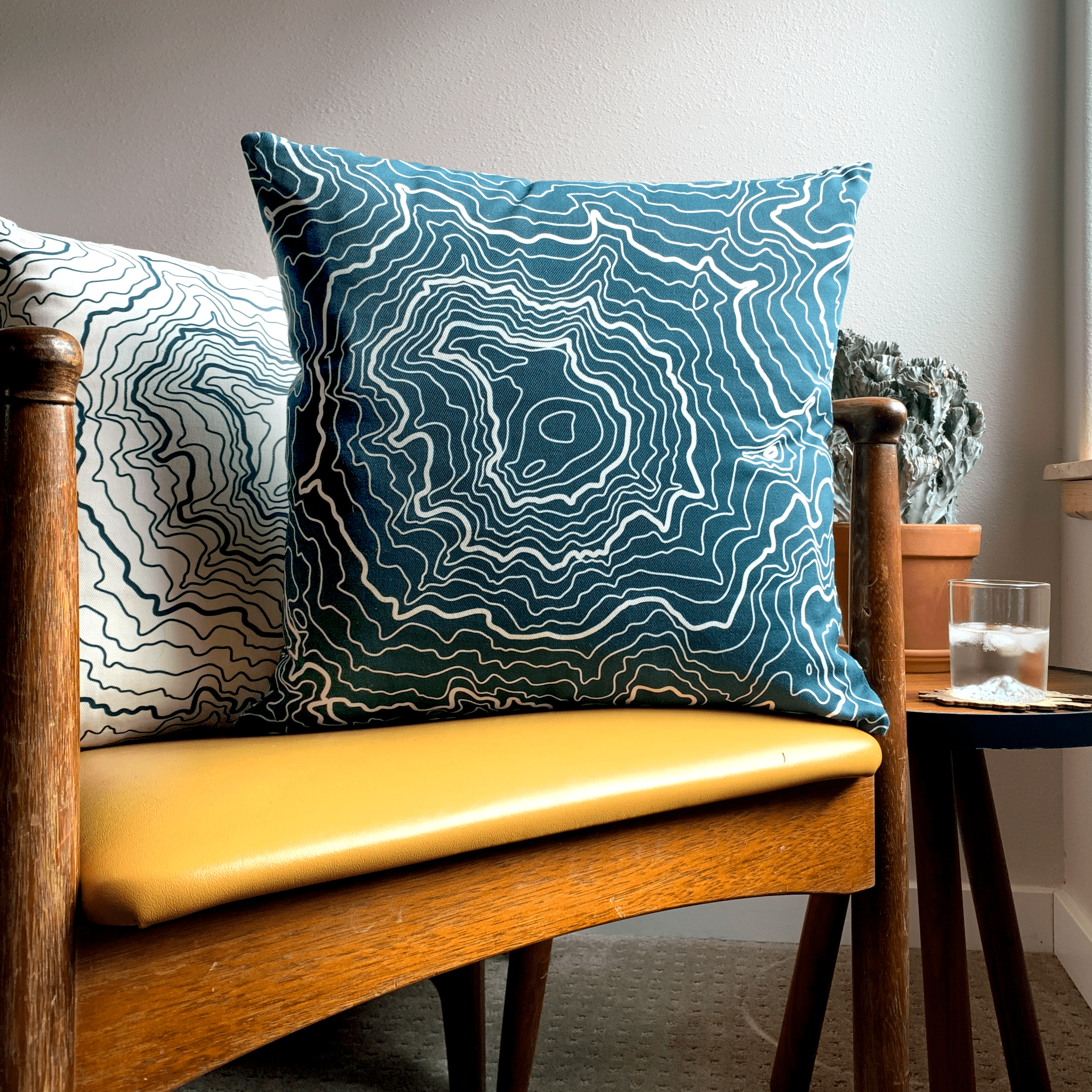 Mt Rainier Topography Pillow - Glacier Blue