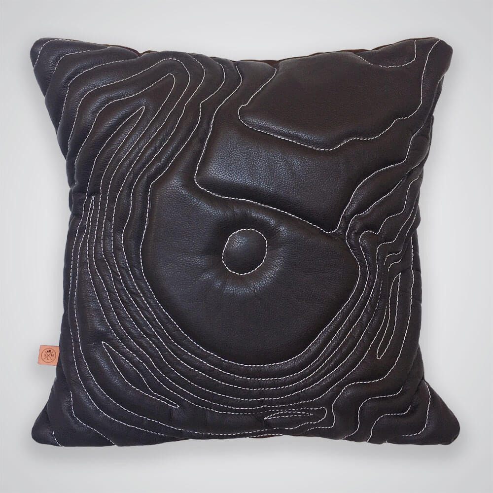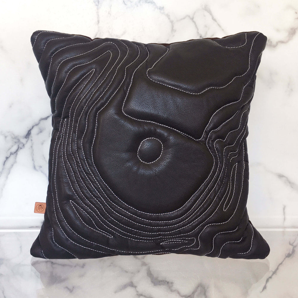 Mt St Helens Topography Pillow - Dark Brown Leather